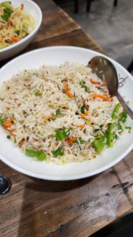 Vegan. Spicy. Battered cauliflower, cilantro, onion, green chili, celery.Lunch Specials served with Veg Spring Roll and Soup of the Day. Includes choice of rice: steamed white/veg/chicken fried rice. Add veg/chicken hakka noodles (extra charge). Add naan/malaysian paratha (extra charge).