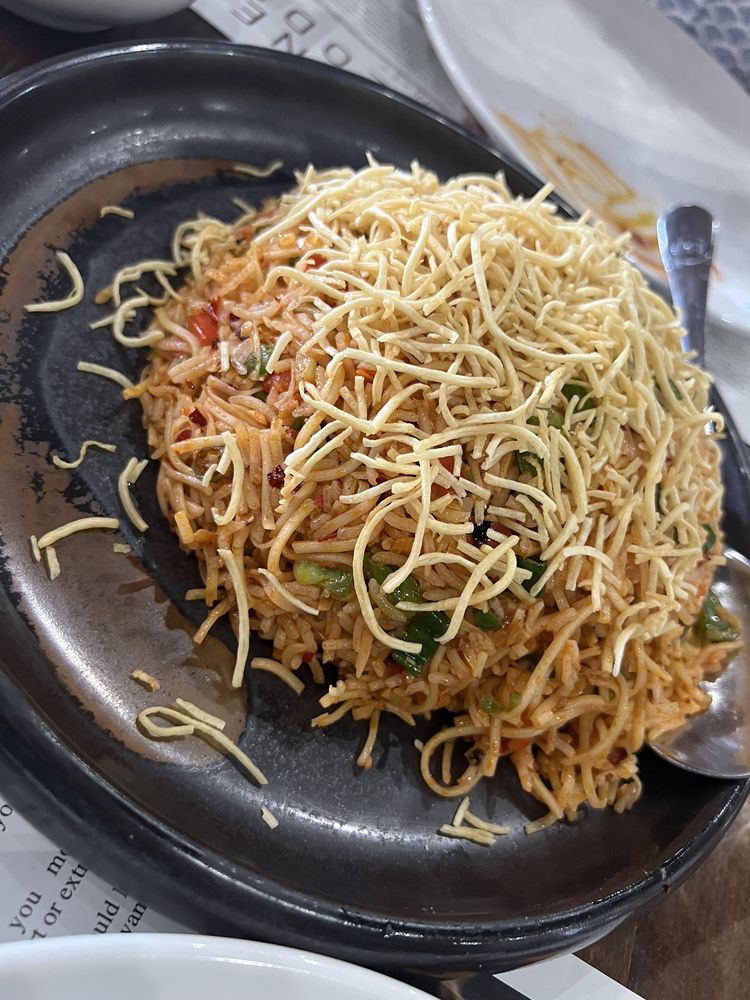 Crispy thin eggless noodle, shredded vegetables, sweet and sour. Choose Veg (vegan), Chicken, Shrimp, or Mixed (chicken/lamb/shrimp).